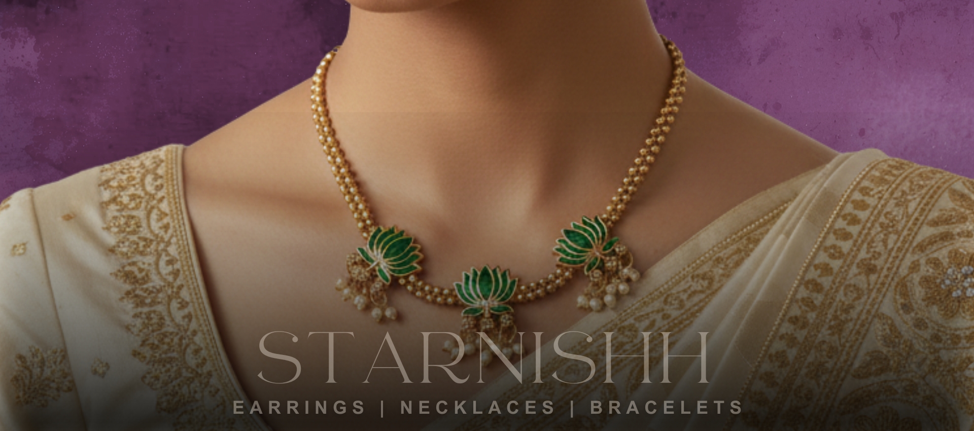 Traditional Lotus Design Gold-Plated Necklace Set with Red & Green Enamel and Pearl Drops | Ethnic Jewelry for Women